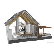 Izrada projektne dokumentacije Temeljna A/B ploča (dodatno se ugovara) Postavljanje HIDRO I TERMO izolacije Izradu i montažu konstrukcijskih elemenata od drveta I-II klase Izradu i montažu termoizolacionih ALPINA PANELA od 150mm + obloga 100mm Izradu i montažu LLD-LAMELIRANOG DRVETA (po projektu) Izradu i montažu krovne limarije i fasade po projektu Ugradnju dimnjaka od Inoksa sa vatrootpornom gips oblogom Montažu PVC-ALU-DRVO stolarije antracit 3 slojno staklo sa roletnama (dogovor) Montažu sobnih vrata Montažu instalacija ( vodovodne, elektro, kanalizacione,.. ) Podrazumjeva kućni razvod NE i spajanje na mrežu Ugradnja komplet sanitarija, GEBERITA, Ugradnja, utičnica ,prekidača i rasvjetnih uređaja Ugradnja GROMOBRANSKE TRAKE PODNO GREJANJE bez izvora energije Podopolaganje laminat, parket, keramika Svi elementi za ugradnju su srednje cjenovne vrjednosti